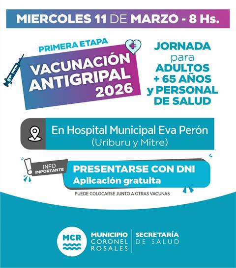 Se informó desde la Secretaría de Salud del Municipio que este 11 de marzo dará inicio la primera etapa de la vacunación antigripal, destinada a …