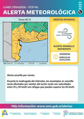 Si bien para esta jornada del Lunes 27 cesó el alerta emitido, se dispuso un nuevo ALERTA AMARILLO por vientos para este martes y miércoles,…