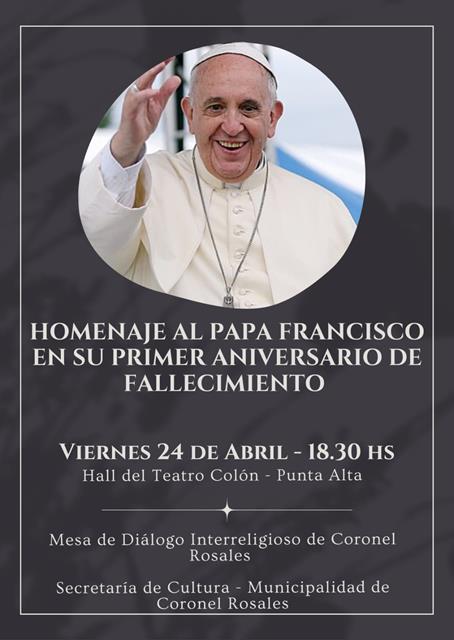 Este Viernes 24 de Abril se llevará a cabo en Punta Alta un homenaje al Papa Francisco, al cumplirse el primer aniversario de su fallecimiento.…