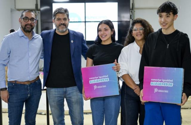 El ministro de Gobierno de la provincia de Buenos Aires, Carlos Bianco, y el intendente de Coronel Rosales, Rodrigo Aristimuño, entregaron 49 netbooks a estudiantes …