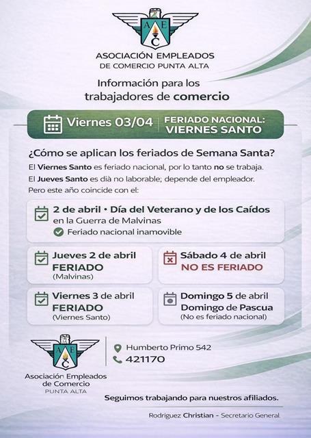Con la llegada de Semana Santa, empiezan las dudas habituales en el sector comercial sobre qué días se trabaja y cuáles no. Desde la Asociación …