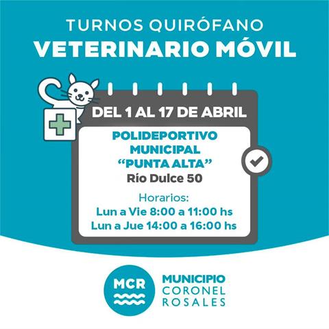 El Quirófano Veterinario Móvil informó como atenderá en este mes de Abril, hasta el 17 se encontrará en el Polideportivo Municipal «Punta Alta», en Río …
