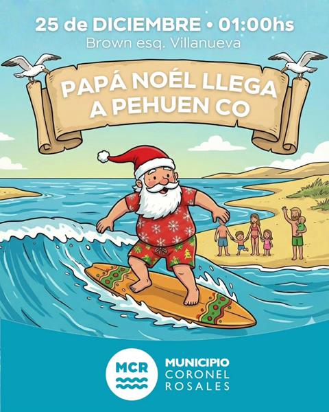 Este 25 de diciembre, desde la 01:00 hs, Papá Noel hará su arribo a la playa de Pehuen Co para compartir un momento especial con …