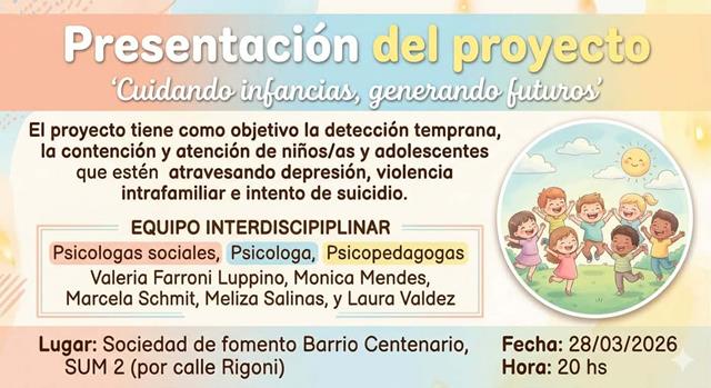 Este Sábado 28 de Marzo, se llevará a cabo en la ciudad la presentación del proyecto “Cuidando infancias, generando futuros”, una iniciativa de carácter privado …