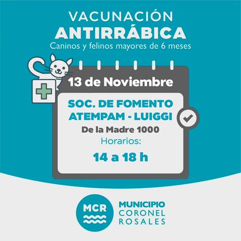 Este Jueves 13 de Noviembre, el Municipio con personal del Quirófano Veterinario Móvil, llevará a cabo una nueva campaña de vacunación antirrábica totalmente gratuita. La …