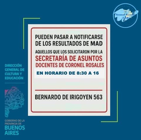 La Secretaría de Asuntos Docentes de Coronel Rosales informa que se encuentran disponibles las notificaciones correspondientes a los resultados de MAD para quienes lo hayan …