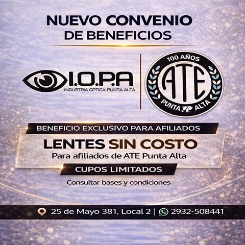 Desde la Comisión Administrativa de ATE Punta Alta informan que, con un gran esfuerzo, han logrado renovar el convenio que brinda un par de lentes …