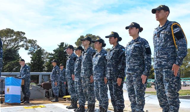 Ceremonia por la afirmación del pabellón del aviso ARA “Estrecho de San Carlos”