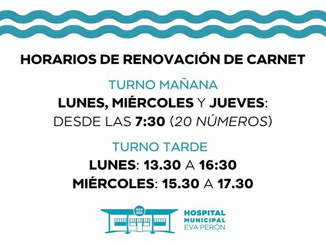 El Hospital Municipal Eva Perón informó los días y horarios establecidos para la renovación del carnet hospitalario.…