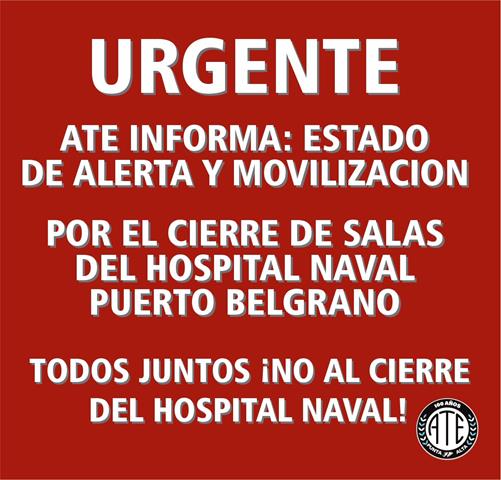 “Todos juntos, ¡no al cierre del Hospital Naval!”, es el mensaje con el que ATE convoca a acompañar las acciones de reclamo y defensa del servicio de salud que presta la institución.