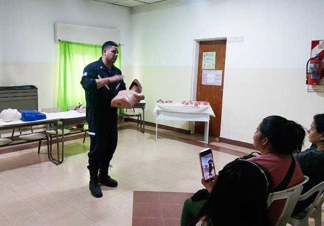 Personal del área de Capacitación de la Asociación Bomberos Voluntarios de Punta Alta visitó el CAPS del Barrio Luiggi, donde ofreció una charla sobre RCP, maniobra de Heimlich y uso de extintores.