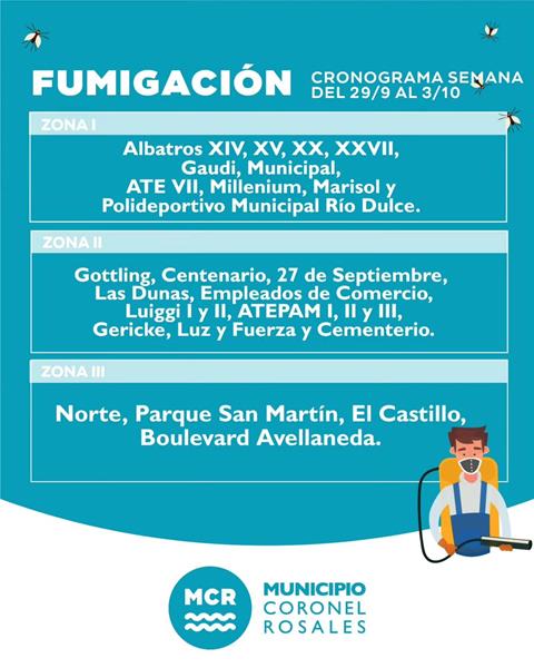 1° semana (29/09 al 03/10): Zonas 1, 2 y 3.