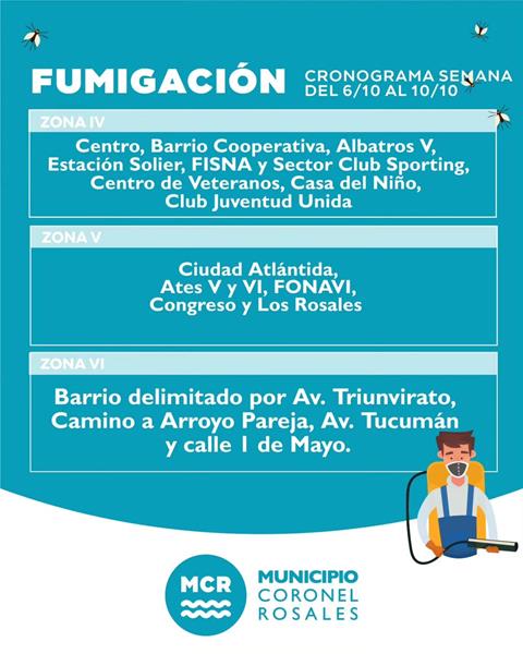 4° y 5° semana (20/10 al 31/10): Zona 10 (refuerzo durante el período estival).