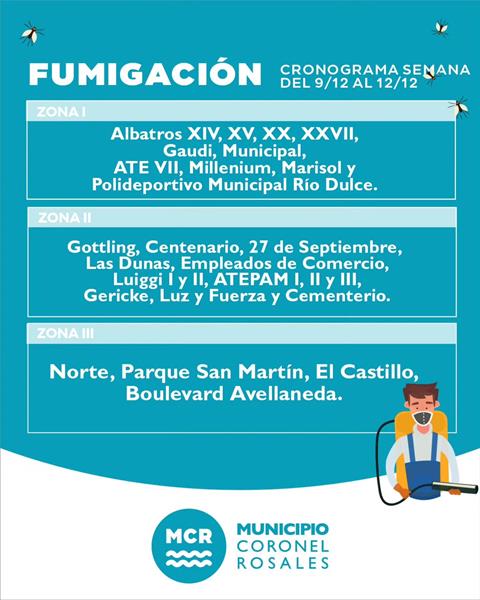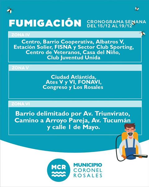 La Dirección de Protección Ciudadana y Medioambiente del municipio, da a conocer el cronograma de fumigación por los distintos barrios de la ciudad.