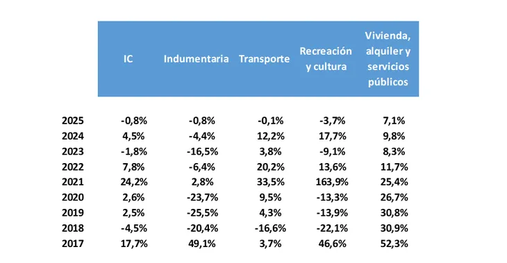 En tanto, el apartado de “Transporte y vehículos” mostró un relativo estancamiento al caer 0,1%, mientras que el conjunto de las demás divisiones tuvo una caída generalizada del 2,9% en enero, y aportó una incidencia negativa de 1,6 puntos porcentuales (p.p.).