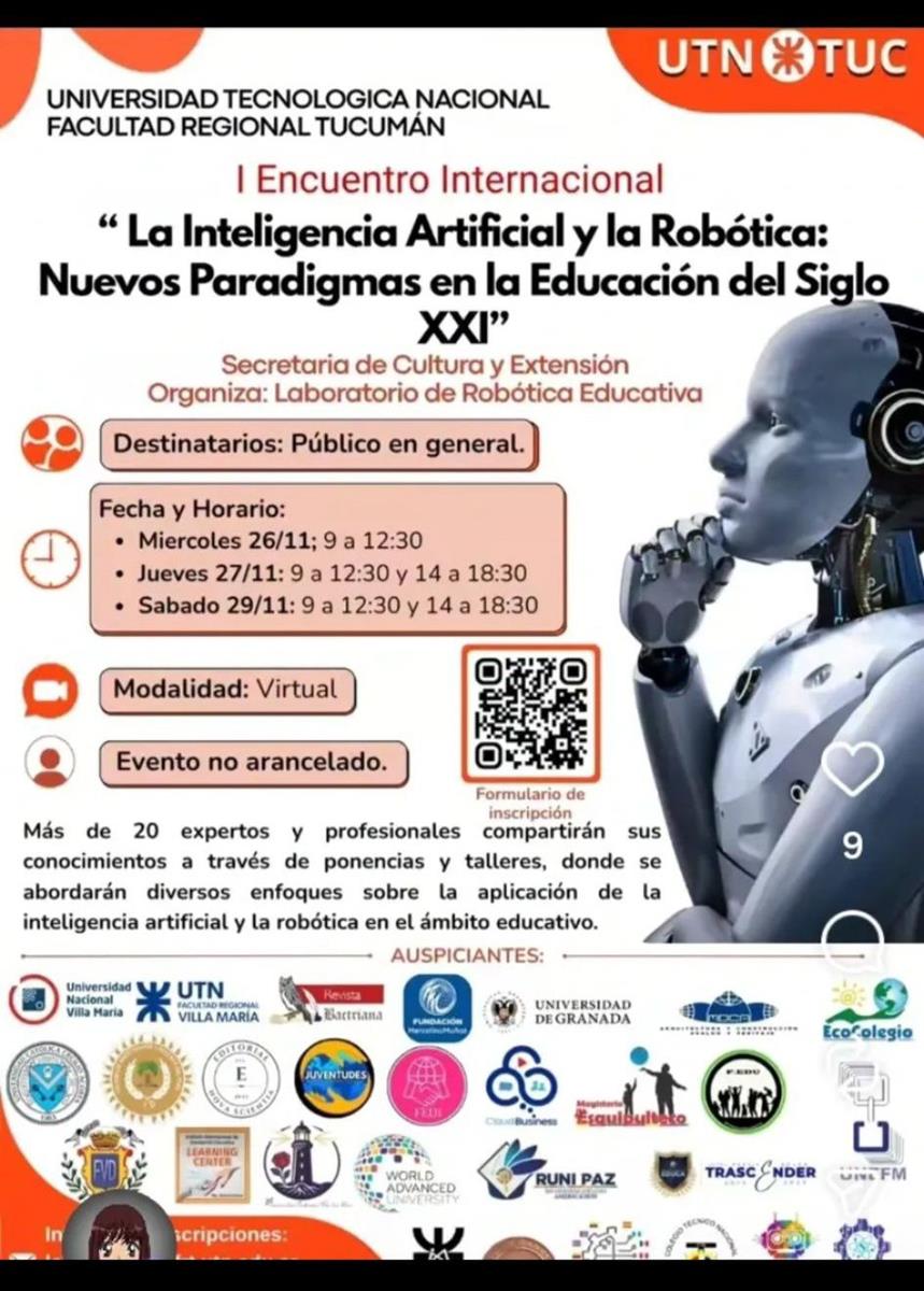 La Facultad Regional Tucumán de la Universidad Tecnológica Nacional anunció la realización del Primer Encuentro Internacional “La Inteligencia Artificial y la Robótica: Nuevos Paradigmas en la Educación del Siglo XXI”, una propuesta abierta al público general que se desarrollará de manera virtual y sin costo.