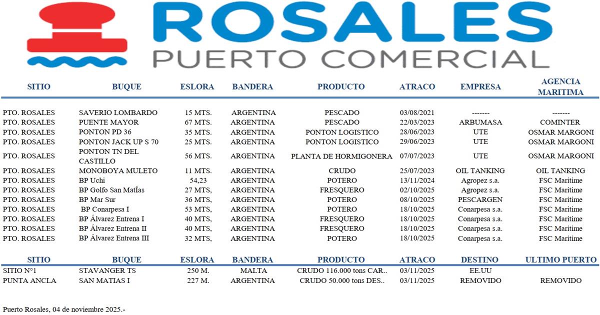 Puerto Rosales, informe de las actividades diarias, suministrado por el Consorcio de Gestión local.