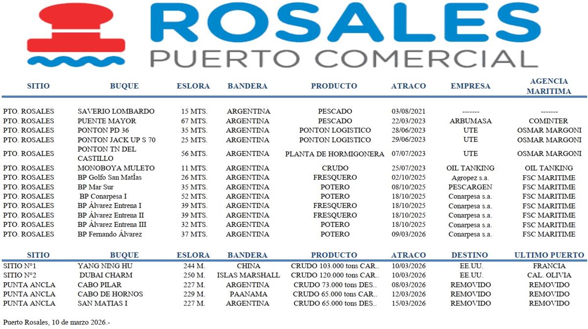 Puerto Rosales, informe de las actividades diarias, suministrado por el Consorcio de Gestión local.