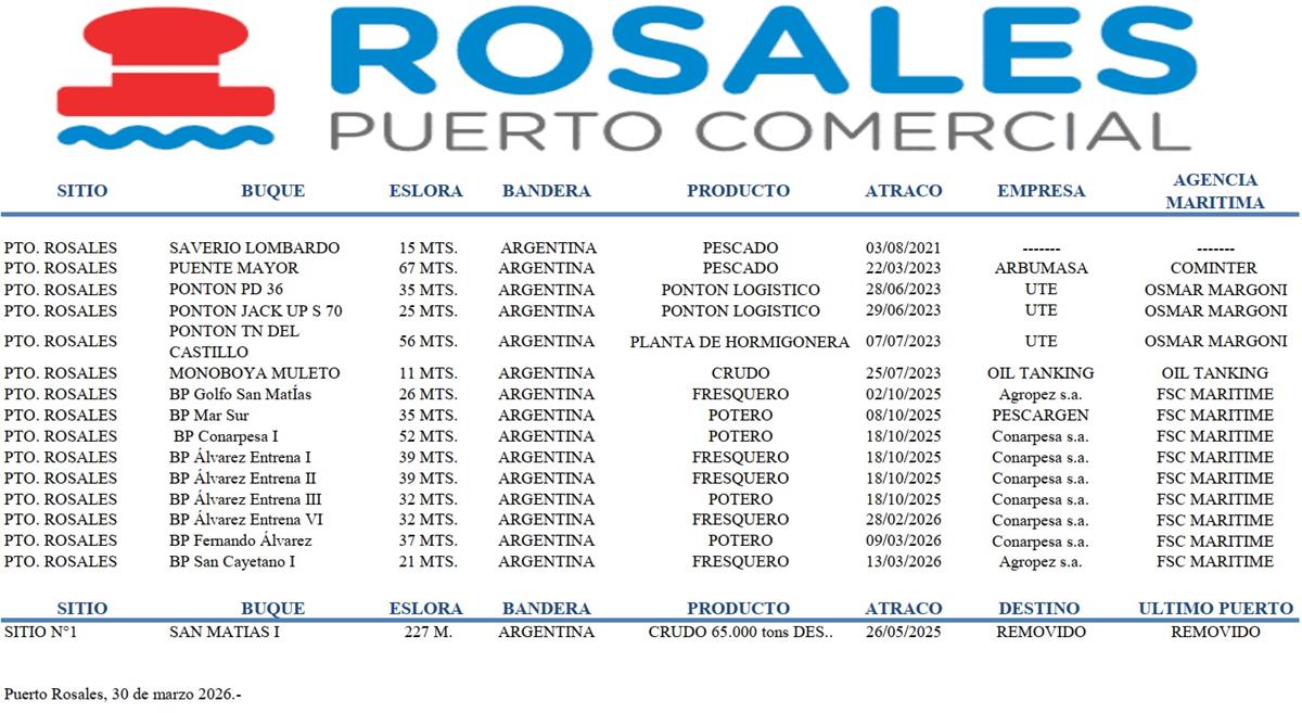 Puerto Rosales, informe de las actividades diarias, suministrado por el Consorcio de Gestión local.