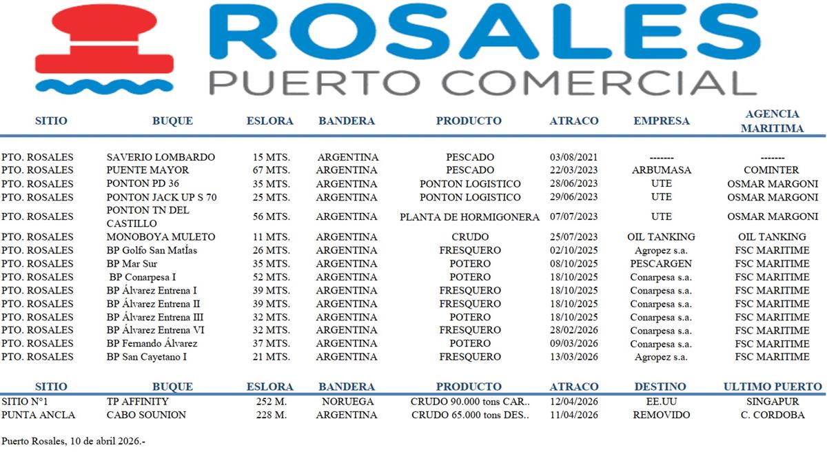 Puerto Rosales un puerto en movimiento, actividades de empresas y mano de obra rosaleña.