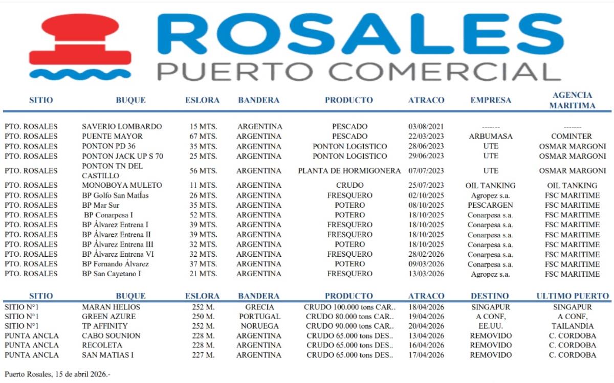 Puerto Rosales, informe de las actividades diarias, suministrado por el Consorcio de Gestión local.