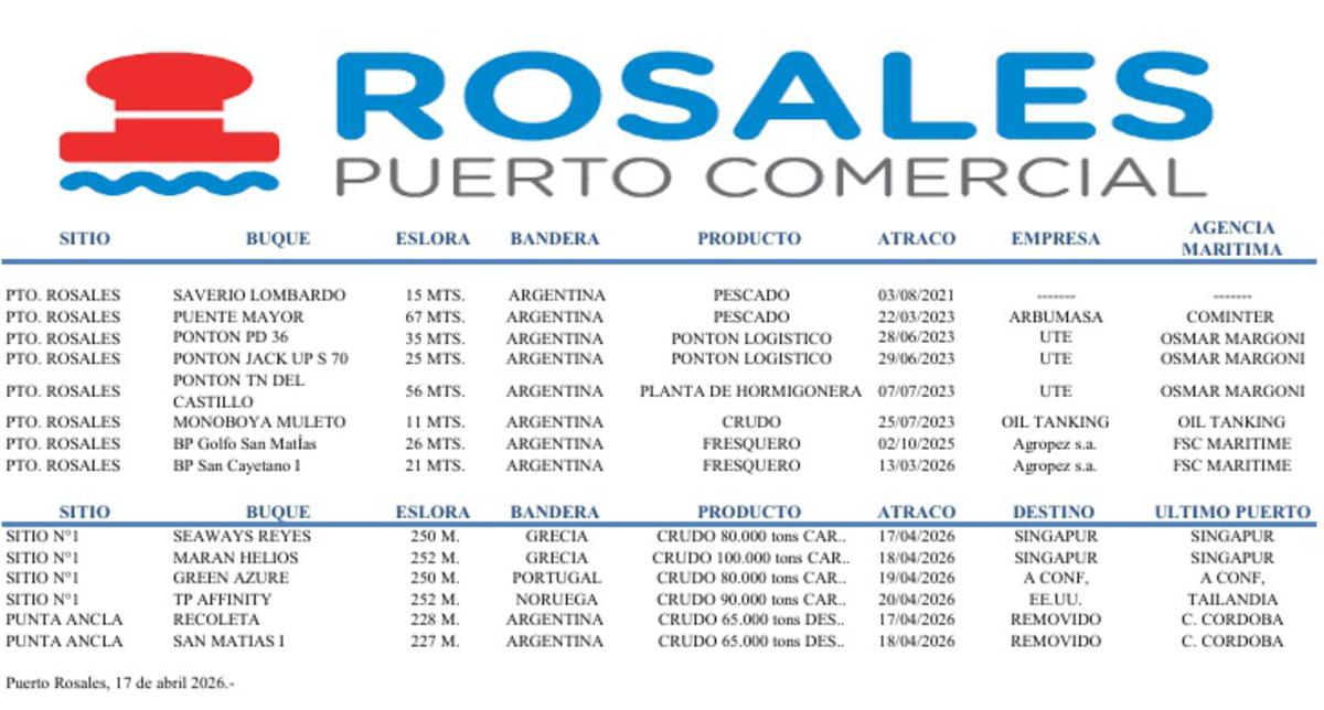 Puerto Rosales un puerto en movimiento, actividades de empresas y mano de obra rosaleña.