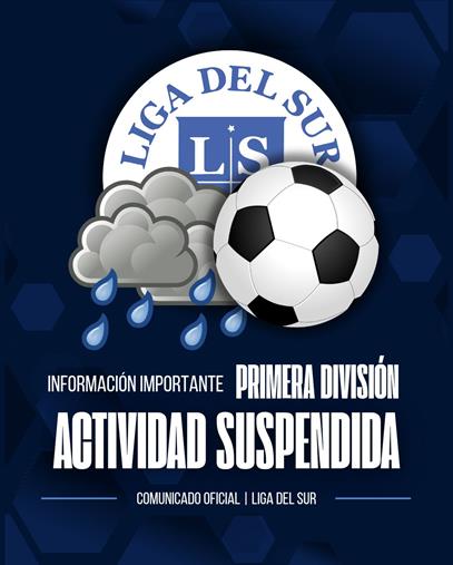 La Liga del Sur informó que, debido a las condiciones climáticas y para preservar el estado de los campos de juego, fueron suspendidos los encuentros que debían desarrollarse en el día de hoy en Primera División.