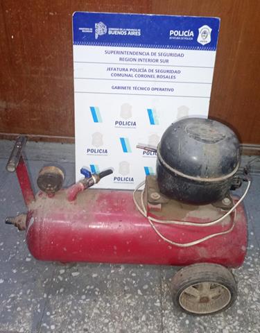 El ladrón fue interceptando a pocos metros con el compresor de aire en su poder, procediendo al secuestro del mismo.